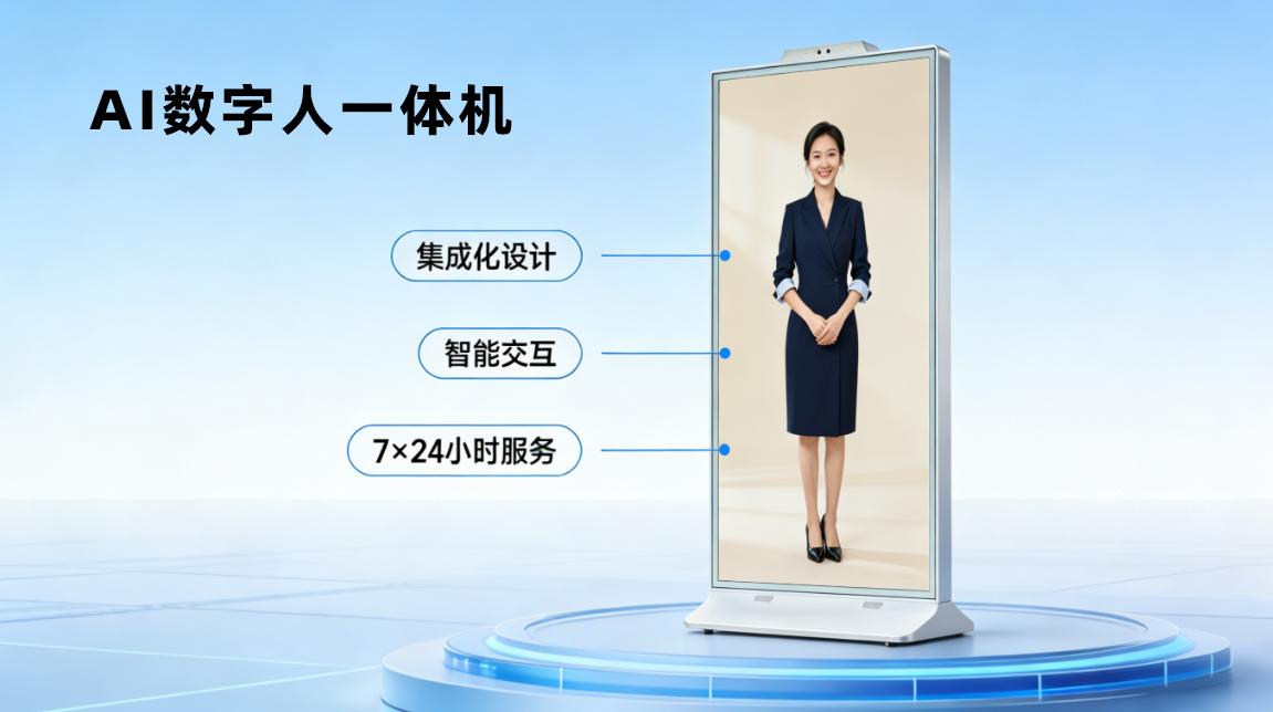 政务数字人一体机:在政务大厅部署数字人一体机,可7×24小时提供政策解读、办事指南、表格填写指导等服务,缓解窗口压力,提升群众满意度。