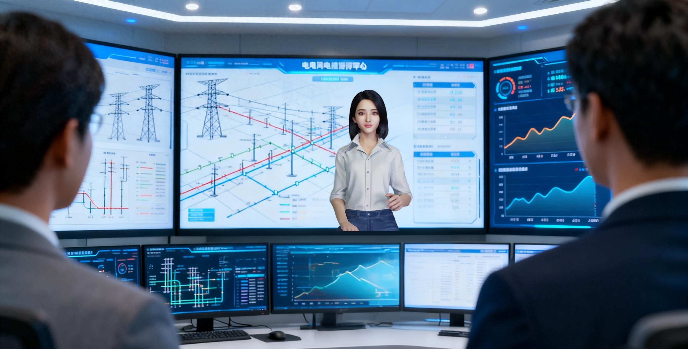 在客户服务领域,AI数字人成为全天候服务的 “智慧管家”。线上嵌入电力企业官网、APP 或微信公众号, 7×24 小时响应电费查询、故障报修等需求,90% 以上的常见咨询无需人工介入。线下营业厅中,AI数字人作为引导员精准分流业务,辅助工作人员完成用电报装等流程,效率提升 7 倍以上。