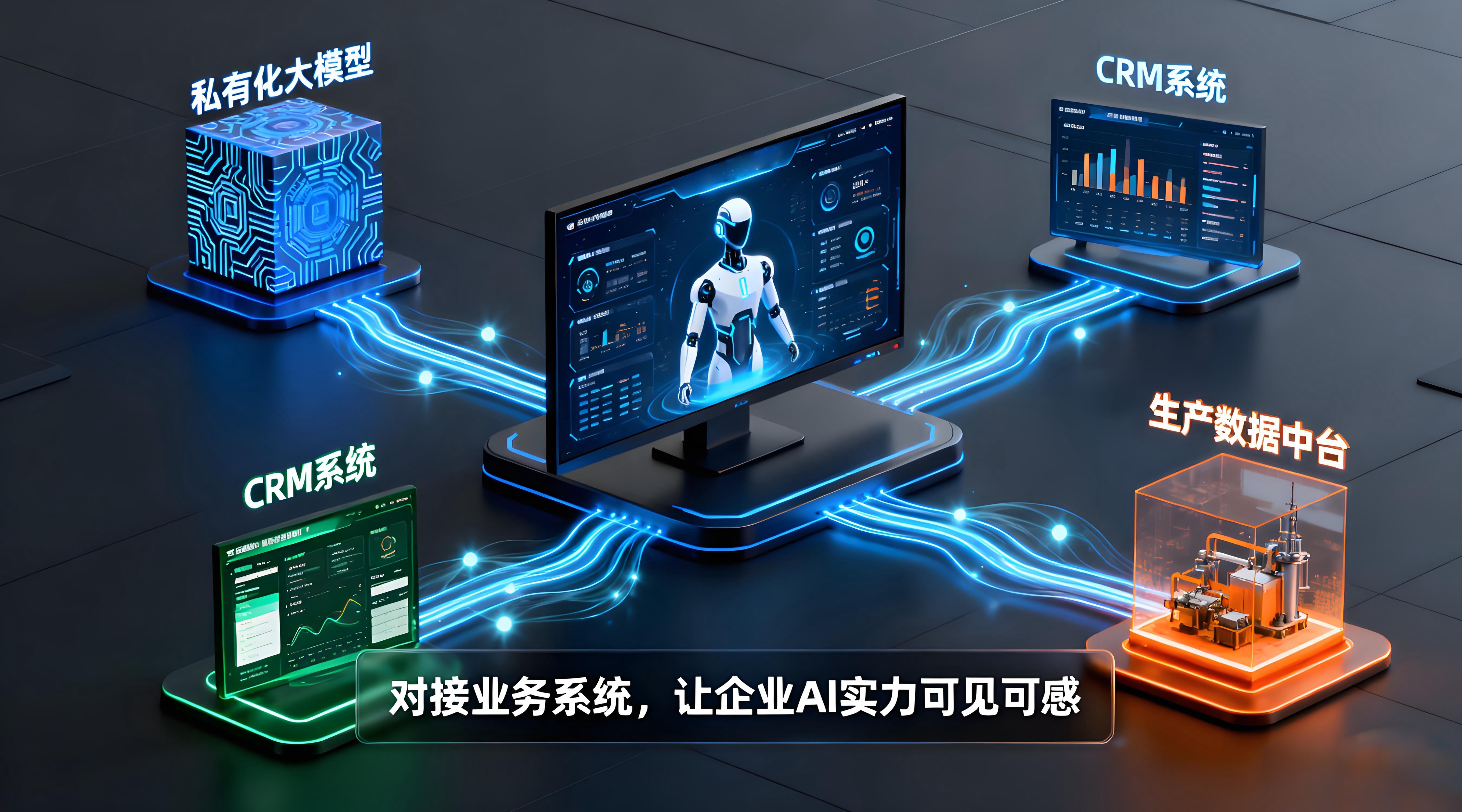 AI数字人智慧大屏的核心优势,不仅在于交互体验的优化,更在于其可以成为企业AI能力的展示窗口。通过接入企业自己的私有化大模型、大数据中心、智能化业务系统等先进技术能力,AI数字人将成为企业智能技术的“具象化载体”,让企业的技术成果实现“可见、可感、可体验”。