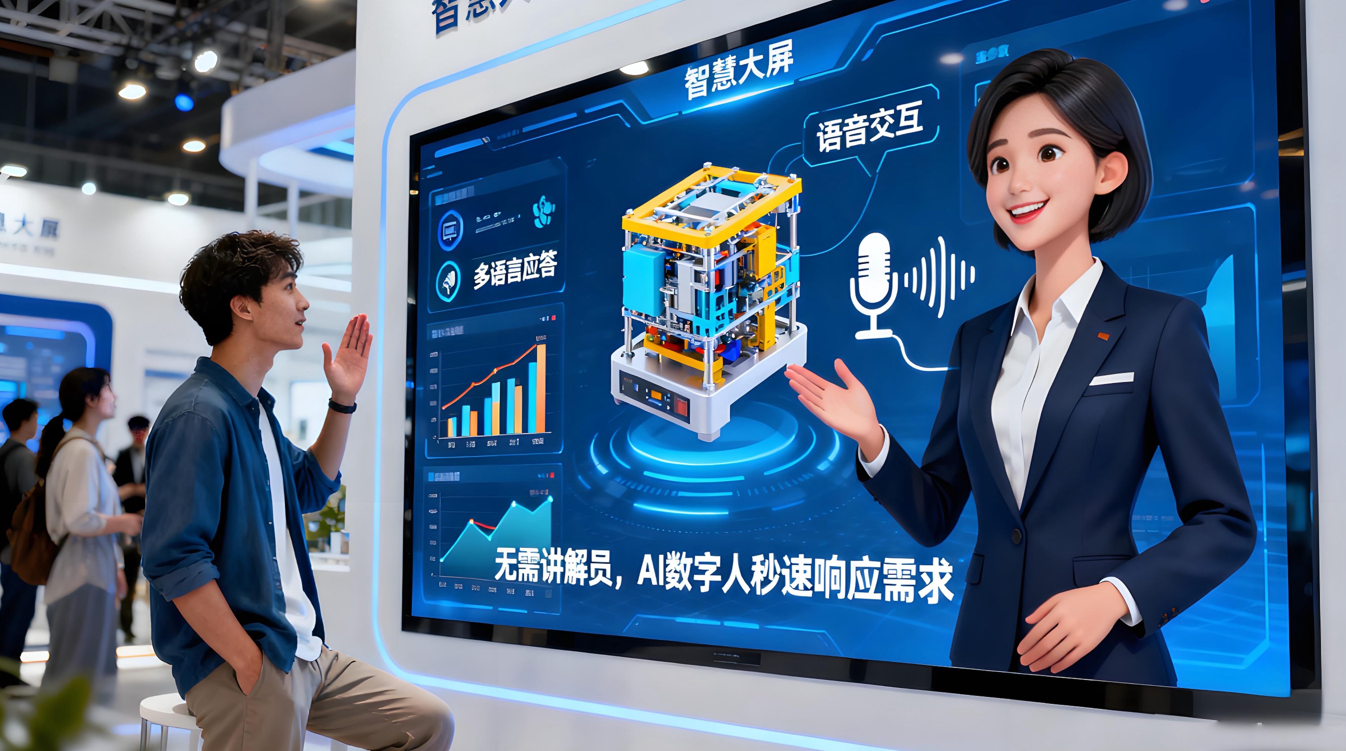 AI数字人智慧大屏是当前智慧展厅最具代表性的技术融合形态。AI数字人的融入让屏幕成为“会思考、能对话”的智能交互终端,通过“形象载体+智能大脑”的组合,实现数字展厅交互体验的质的飞跃。