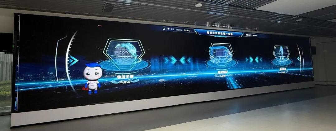 例如,当来访者提出“当前临沂到北京的物流专线运力如何”“今日园区内冷链物流周转量”等具体问题时,“集宝”能快速响应并联动大屏呈现相关数据看板,让复杂的物流数据变得直观易懂;如果来了国际访客,只需要切换到对应的语言模式,“集宝”就能立刻切换语言继续讲解。这种自由问答+语音控制的交互方式,大大提升了访客的参与感。